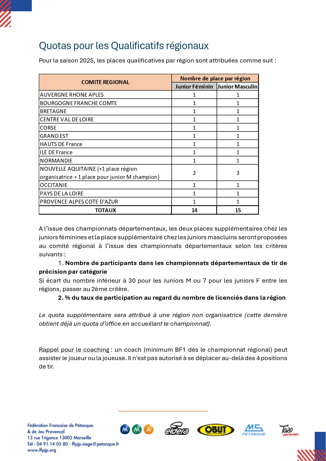 ANNONCE SELECTION CHAMPIONNATS D’EUROPE TRIPLETTE / TIR DE PRECISION SENIORS MASCULINS 2025 Posted on 21 mars 2025 by CD 48 Pétanque