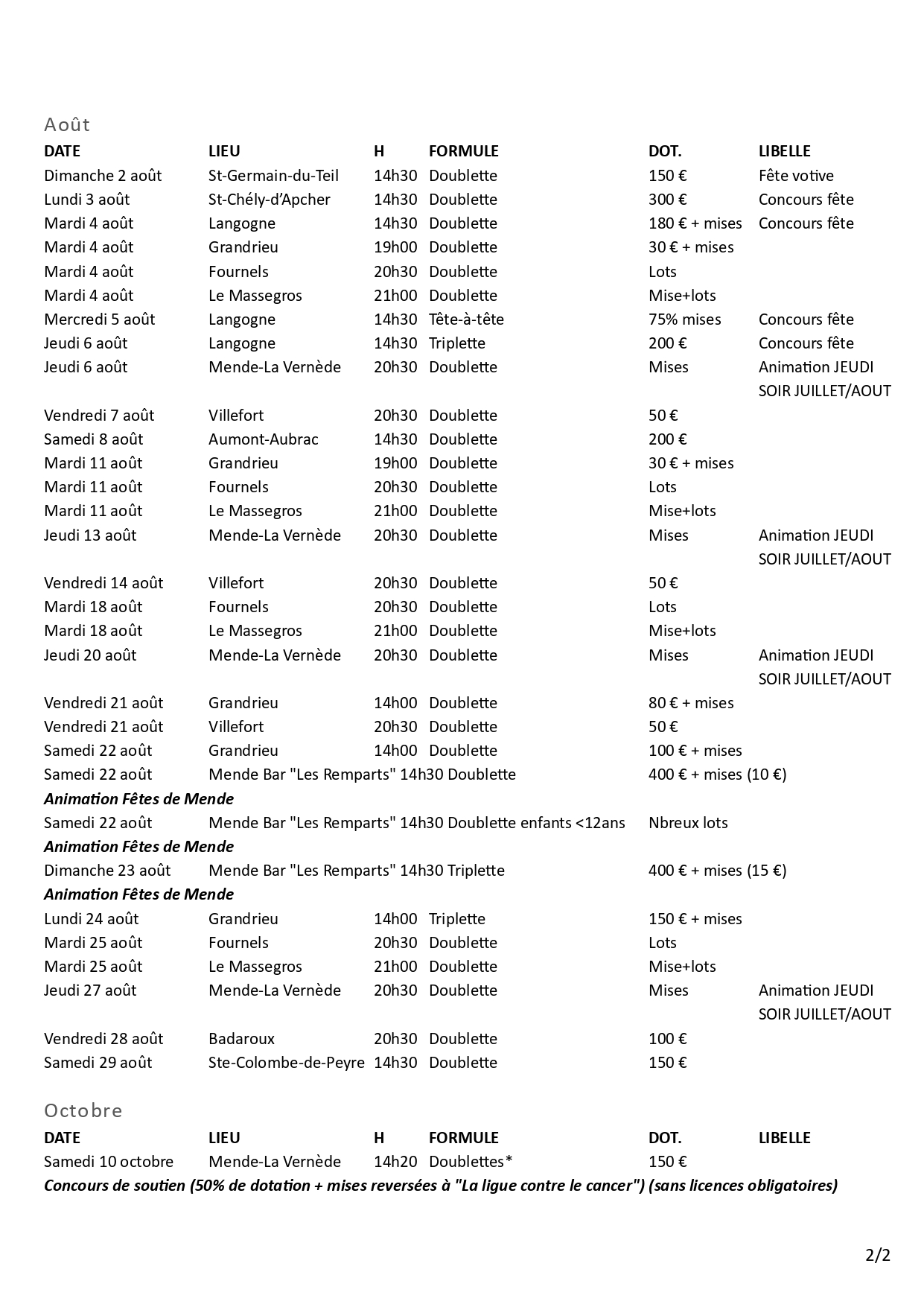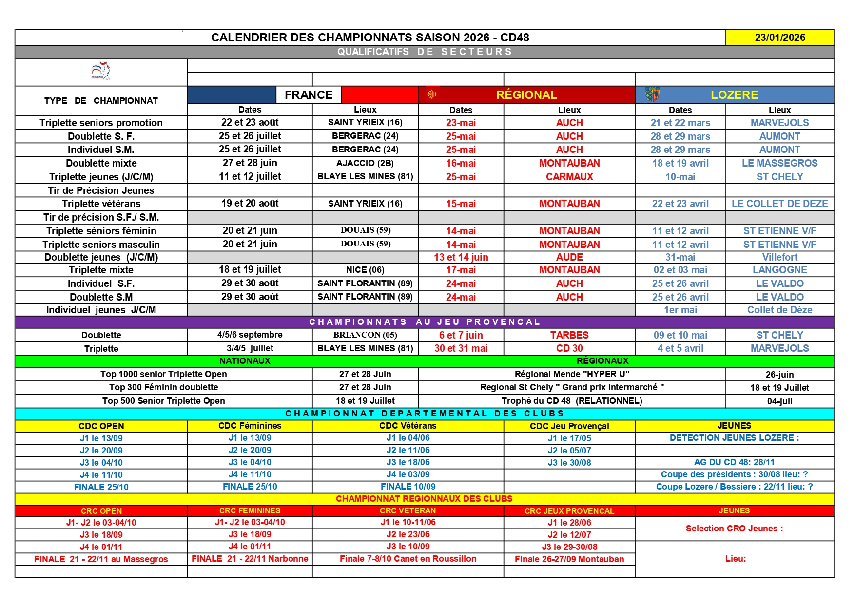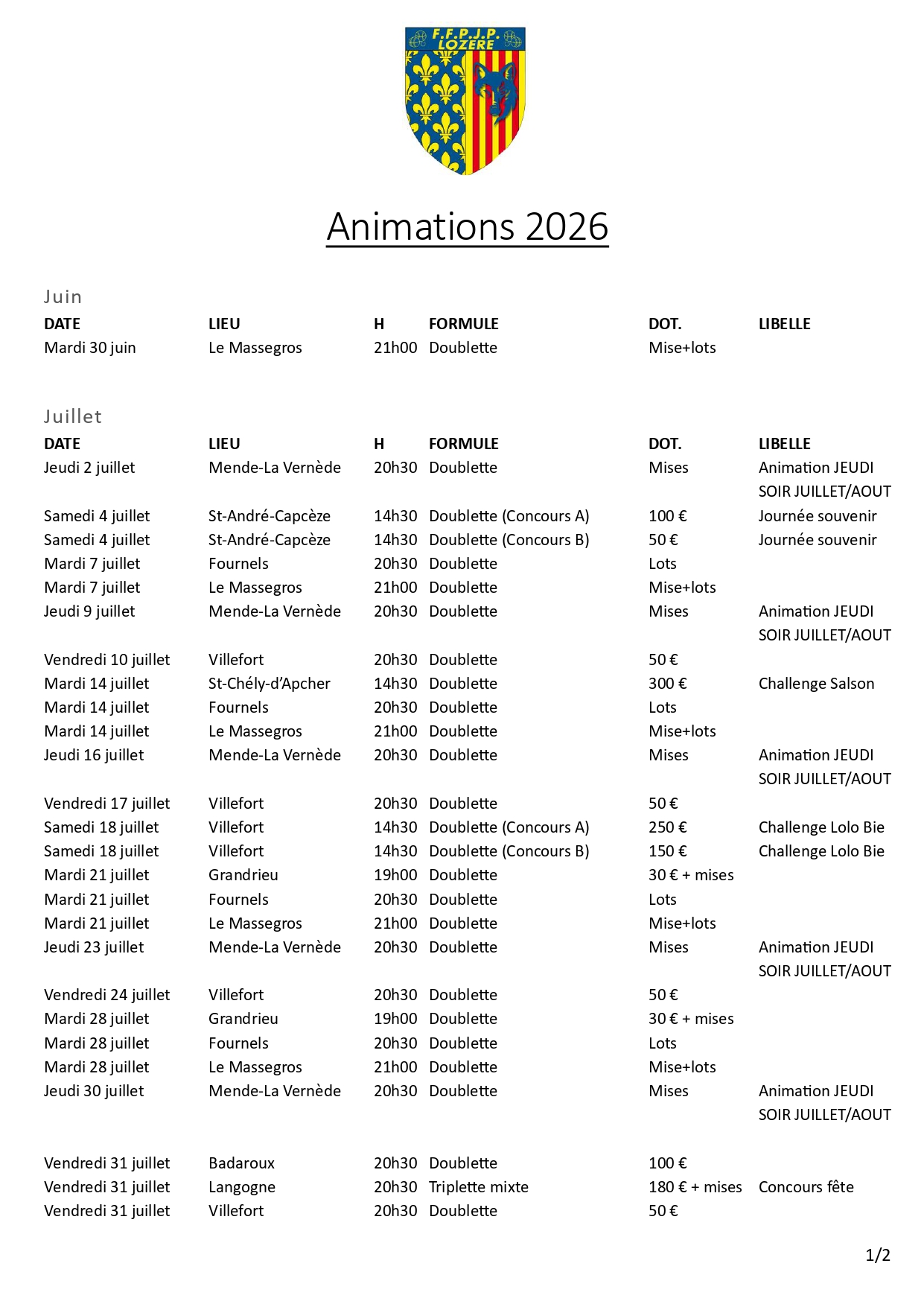 CALENDRIERS OFFICIELS 2026 Calendrier_officiel_2026.PDFTélécharger CAL.2026-Conc-Champ2026.PDFTélécharger CALENDRIER-Animations-2026.PDFTélécharger Calendrier_Championnats_Lozère_2026.PDFTélécharger Calendrier_Championnats_Occitanie_2026.PDFTélécharger Calendrier_Championnats_France_2026.PDFTélécharger Partager cet article : on Twitter on Facebook